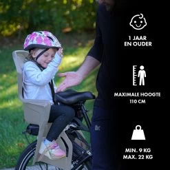 Brioso Fietsstoeltje Achter – Achterzitje Fiets – Kinderzitje Fiets – Zandgrijs/zwart