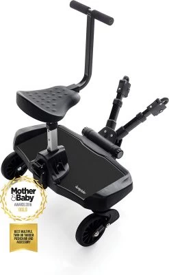 Merkloos Happyment® Universeel Meerijdplankje – Met Zitting – Voor Kinderwagen – Buggyboard – Zwart