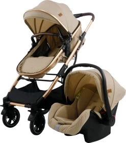 Ding Vivo Wandelwagen – Beige/Rose – Inklapbare Buggy – Inclusief Boodschappenmandje En Zonnekap