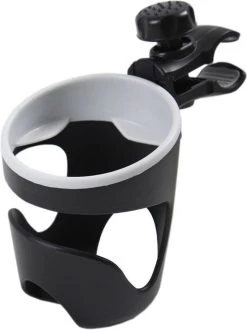 Een mooie universele bekerhouder van A3 voor op de kinderwagen of wandelwagen! Met de klembevestiging met schroef past hij vrijwel overal op.