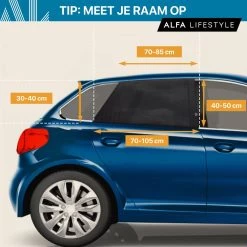 Tip: Een grote wagen betekent niet dat u grote ramen heeft. Een kleine wagen wil niet zeggen dat u kleine ramen heeft. Elke wagen & zijn ramen zijn verschillend, hierdoor wordt aangeraden een opmeting te doen van uw raam. Dit van de bovenkant van de deur tot waar het raam eindigt.