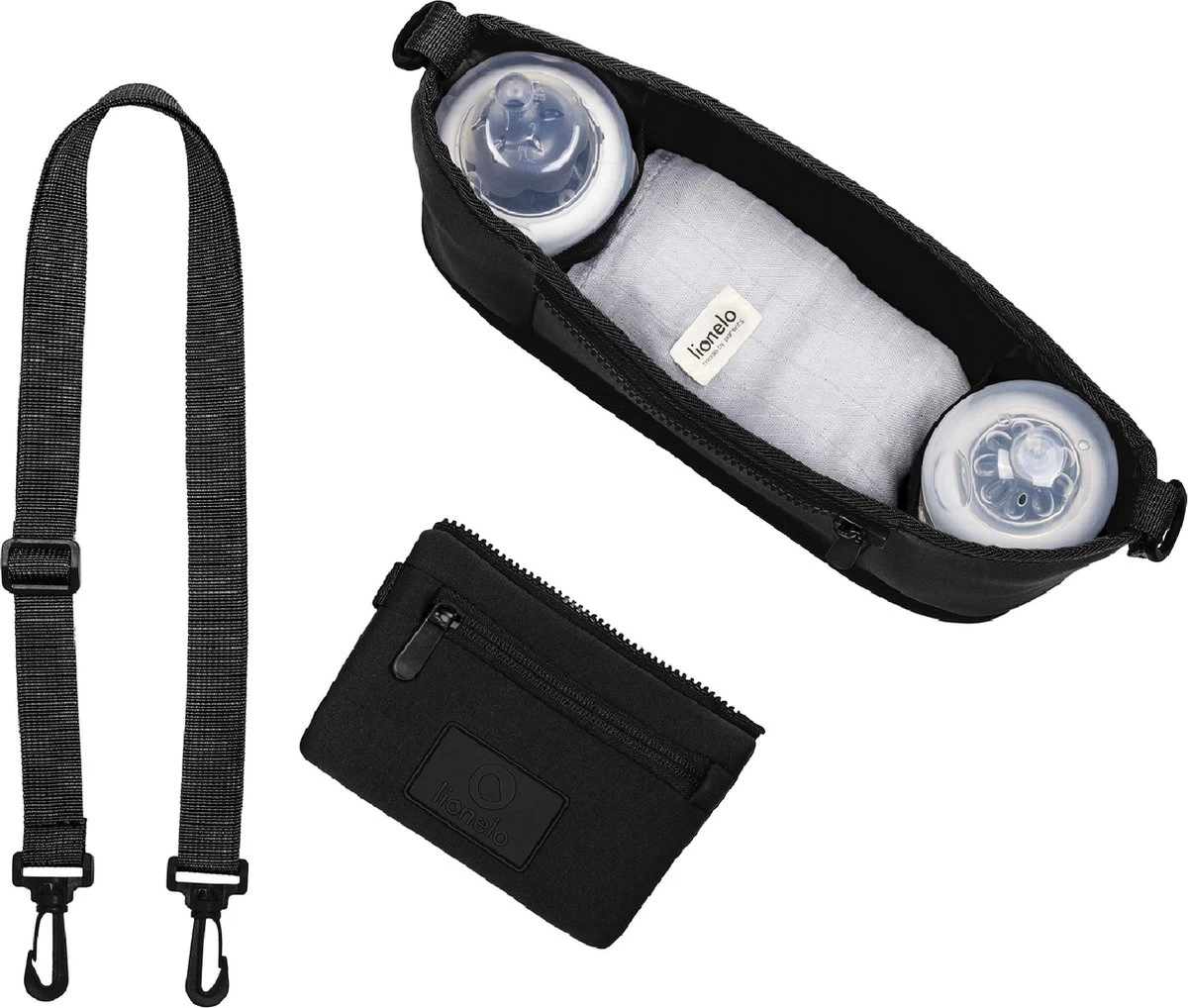 De Lionelo Cube organizer kan snel en stabiel op elke kinderwagen worden gemonteerd, waardoor zowel voedselflessen als noodzakelijke persoonlijke accessoires, d.w.z. sleutels, telefoon of smartphone, altijd in de buurt zijn.