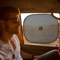 Met de zonwering van Navaris zorg je voor meer schaduw op de achterbank als de zon fel schijnt tijdens een lange autorit. De schermen worden eenvoudig met een zuignap bevestigd. SEMI-TRANSPARANT MATERIAAL