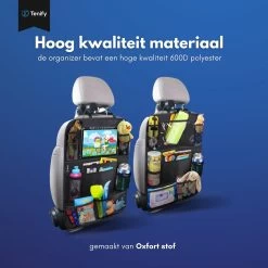 De organizer voorkomt een hoop rommel in de auto. Maar het bevat nog meer. Met deze Tenify organizer bescherm je de achterkant van de stoel en kunnen de kinderen met hun tablet/iPad (tot 10 inch) gemakkelijk hun gang gaan met de zekerheid dat de tablet/iPad niet beschadigd. Daarbij bestaat dit product uit een set van 2, waardoor je gelijk voor beide stoelen een organizer hebt.